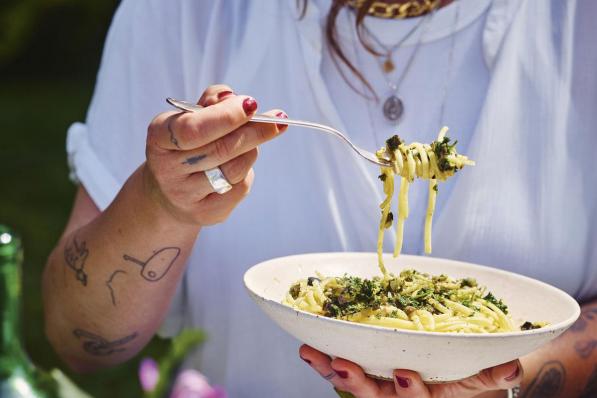Magazine Magazine Pâtes alla Sophia Sophia Loren: "Voici comment je prépare une sauce inspirée du pesto, mais toute différente. C'est vraiment ma propre invention, et mes amis la trouvent délicieuse. J'espère qu'ils ne disent pas ça pour me faire plaisir, mais je ne pense pas, car ils se resservent toujours copieusement."