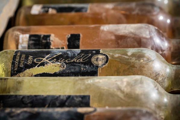 Culinaire Culinaire "Flutwein" (vin de crue): une cuvée sauvée des eaux "On veut faire renaître le vin": pour la région viticole de l'Ahr, des bouteilles couvertes de boue, sorties des caves inondées, représentent l'espoir d'un nouveau départ après les crues mortelles qui ont frappé l'Allemagne il y a trois semaines.