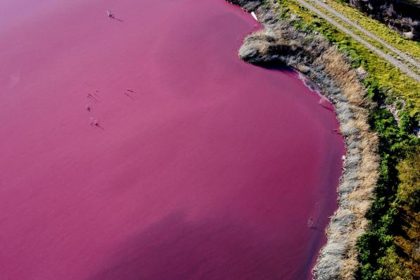 Voyage Voyage Une lagune de Corfo en Patagonie, vire au rose Une lagune de Patagonie conservait dimanche sa teinte rose due au deversement de produits chimiques par des entreprises de pêche de la région, un phénomène qui inquiète les populations locales dans cette région du sud de l'Argentine.