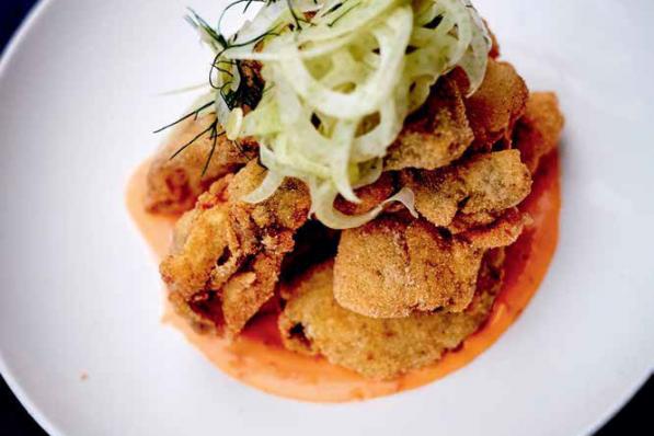 Culinaire Culinaire Huîtres frites en chapelure de polenta, salade de fenouil et aïoli au piment (recette) Une façon surprenant de préparer les huîtres.