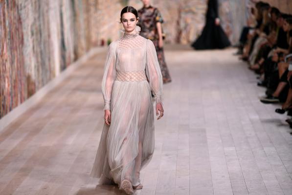 Mode Mode La matérialité au coeur du défilé haute couture de Dior Après la parenthèse Covid où les vêtements ont été présentées virtuellement, Dior titille les sens avec un défilé dans un pavillon entièrement brodé par des artisans indiens, au premier jour de la haute couture à Paris.