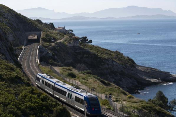 Voyage Voyage Le mythique train de la côte Bleue reprend du service, entre l'ocre des falaises ocre et le bleu de la Méditerranée Depuis Marseille, le train de la côte Bleue serpente à nouveau à flanc de falaise au-dessus de la Méditerranée. Construite en grande partie grâce à des ouvriers immigrés, cette ligne centenaire revit grâce à des travaux acrobatiques.