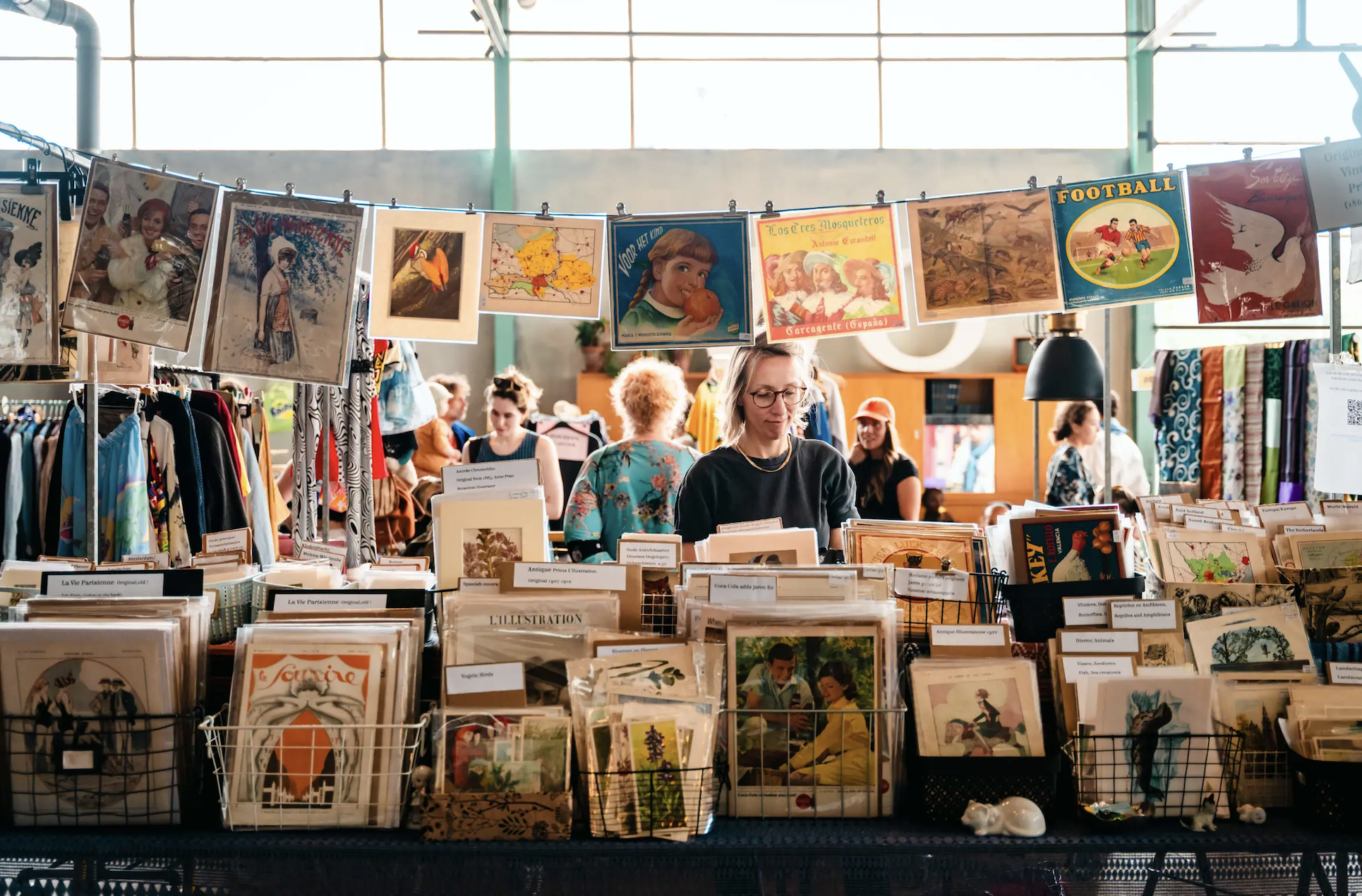 Vintage aan de Maas est un marché vintage mensuel à Rotterdam. Rien que pour le lieu – un ancien chantier naval sur les rives de la Meuse – l’adresse vaut le détour. On y flâne entre les stands de vêtements, meubles, jouets, vinyles et accessoires, des chaises seventies aux jeans preloved.