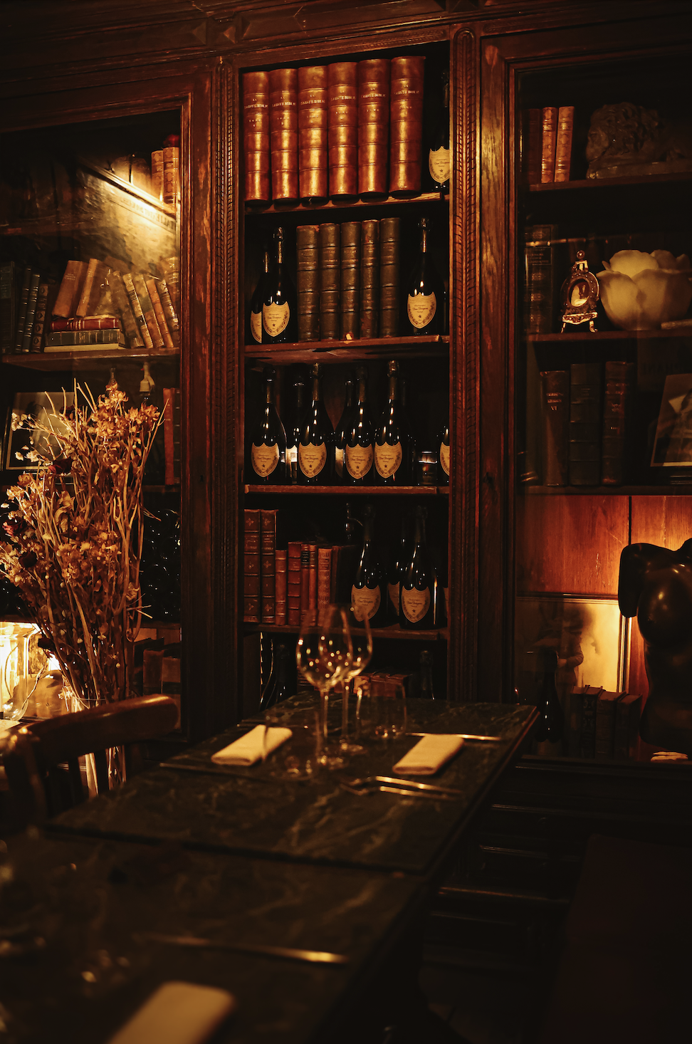 Qu’on se le dise, peu importe où se situe votre table, vous vivrez un moment hors du temps dans ce fabuleux hôtel de maître de la capitale. Un cadre spectaculaire sublimé par la décoration imaginée par l’architecte d’intérieur Annie Mesmin. L’établissement compte plusieurs espaces privatisables dont une élégante cave et un boudoir cosy avec cheminée. Pour un dîner en petit comité, la Bibliothèque peut accueillir jusqu’à 10 invités. Le spot parfait pour se délecter d’un menu de haute voltige signé Matthias Van Eenoo.