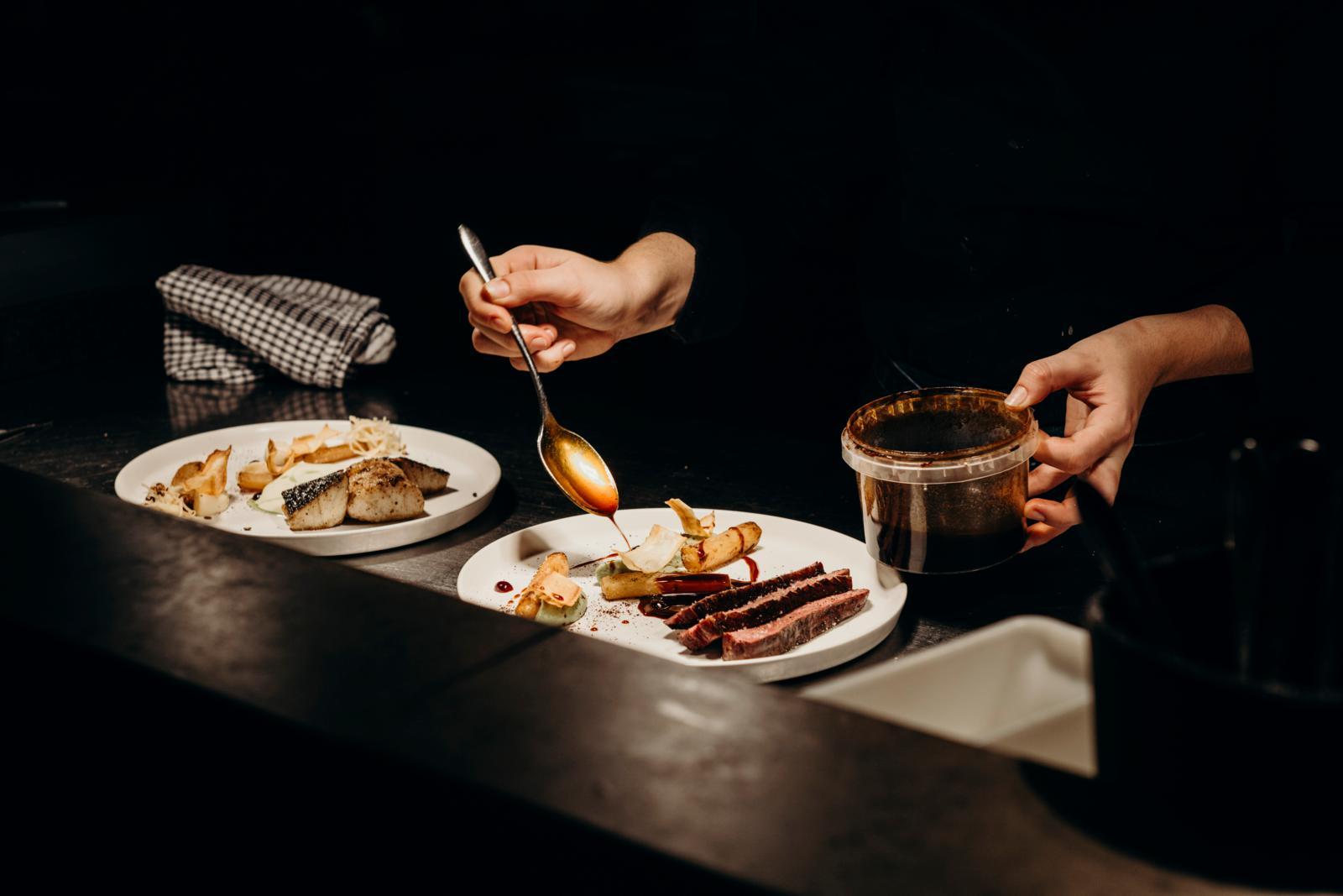 Tandis que les contours du restaurant se profilent à l’horizon, la lumière décline derrière la lisière. Gnoki trottine à ses côtés, rassasiée d’air froid. Quinze minutes de « power nap » plus tard, Loélia reprend du service comme si rien n’avait cessé. Elle parle de ce que c’est d’être deux chefs en cuisine. «J’ai souvent des intuitions, mais il faut que Vadim goûte. Quand ça fonctionne, il le voit tout de suite.» La discussion, ici, passe d’abord par l’assiette. Et si ça ne marche pas, on recommence.