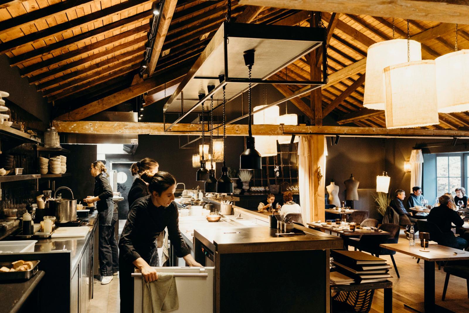 Silhouette élancée et regard perçant façonné par des yeux brun-vert, Loélia Gachadoat (27 ans) tend la main ferme de ceux qui savent où ils vont. Il est 9h30 et la jeune femme vêtue de noir vient d’ouvrir la porte du restaurant qu’elle a lancé en 2022 avec Vadim Poncelet (29 ans), son compagnon. L’air froid des Ardennes, qui a blanchi les cimes des sapins pendant la nuit, reste accroché aux vitres extérieures. Avec sa persistante odeur de bouleau brûlé, l’imposante salle où la cheffe nous fait entrer a tout du refuge contre l’hiver.