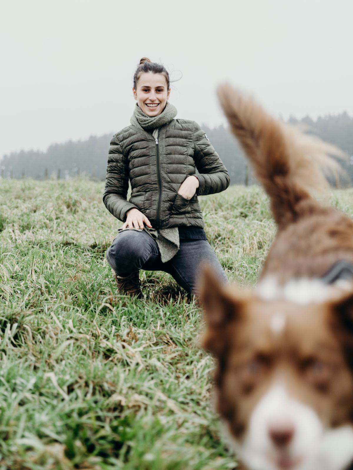 La chienne trépigne, impatiente de retrouver le sentier agricole qui borde les sapins. La neige tombée dans la nuit a recouvert le chemin d’une pellicule blanche. «Quand je marche avec elle, j’essaie vraiment de ne pas penser à la cuisine.»