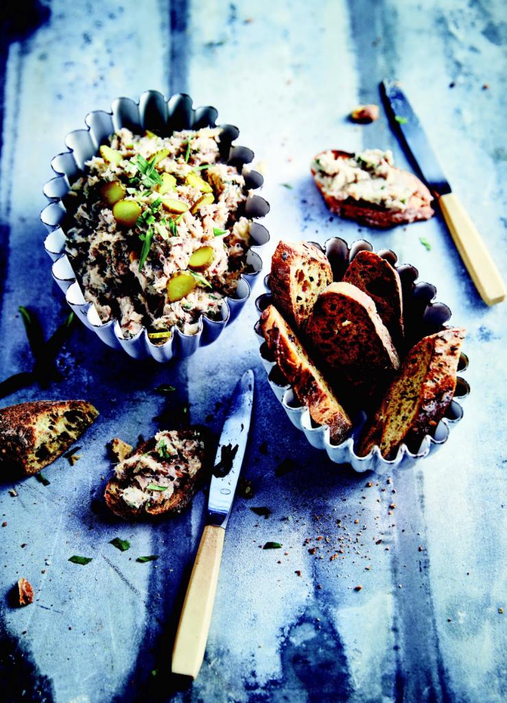 Faites griller des tranches de pain puis servez les rillettes bien fraîches avec des cornichons ou des pickles maison.