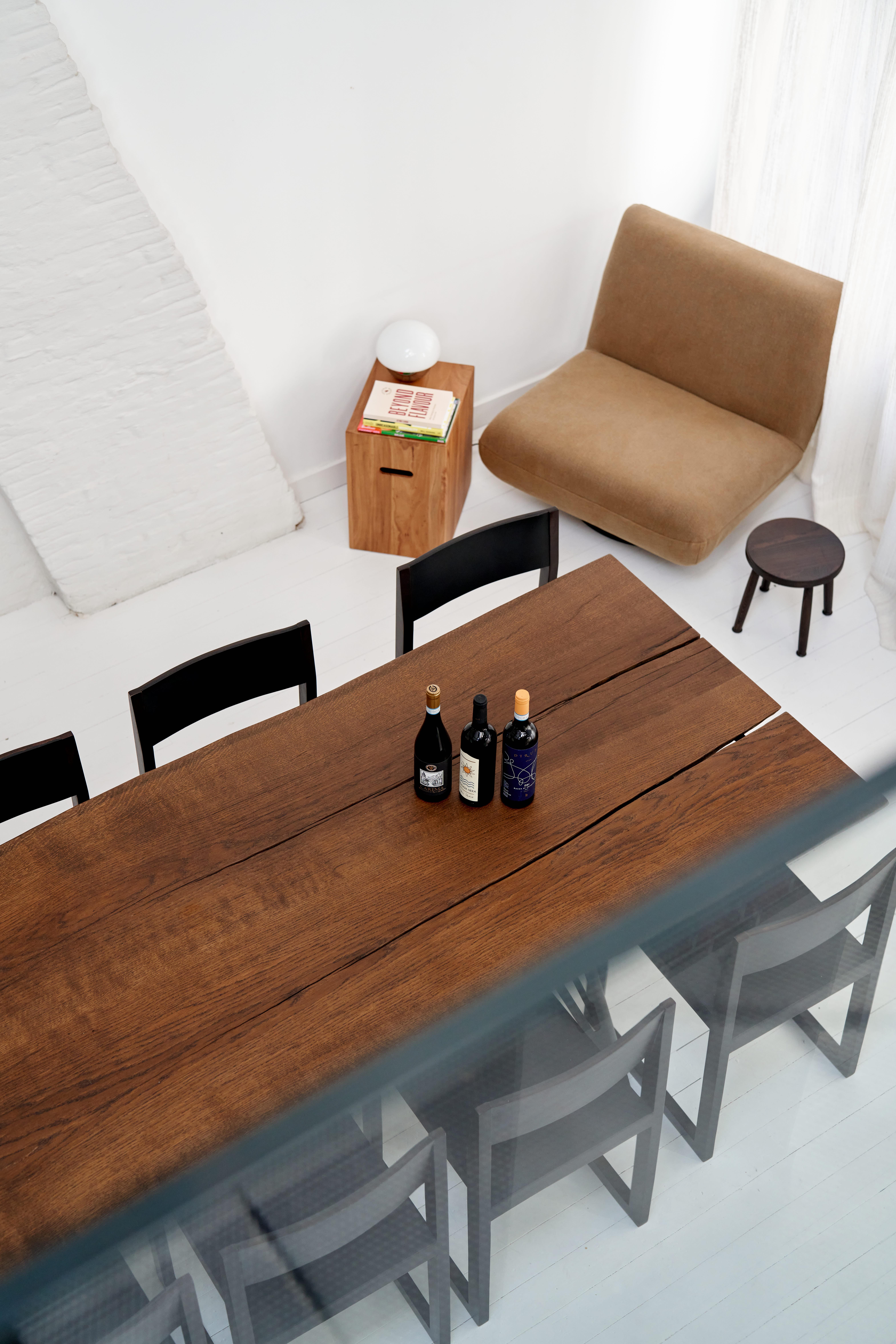Mon meilleur achat déco est une grande table à manger en bois massif. Une pièce sur mesure réalisée par l’atelier gantois Treeline, à partir d’un Xxboom datant de 1944. Sur cette table, je fais ma comptabilité et je reçois mes amis. Autour, les gens et les histoires se rencontrent, parfois jusqu’au bout de la nuit. Mes chaises viennent de Zara Home.