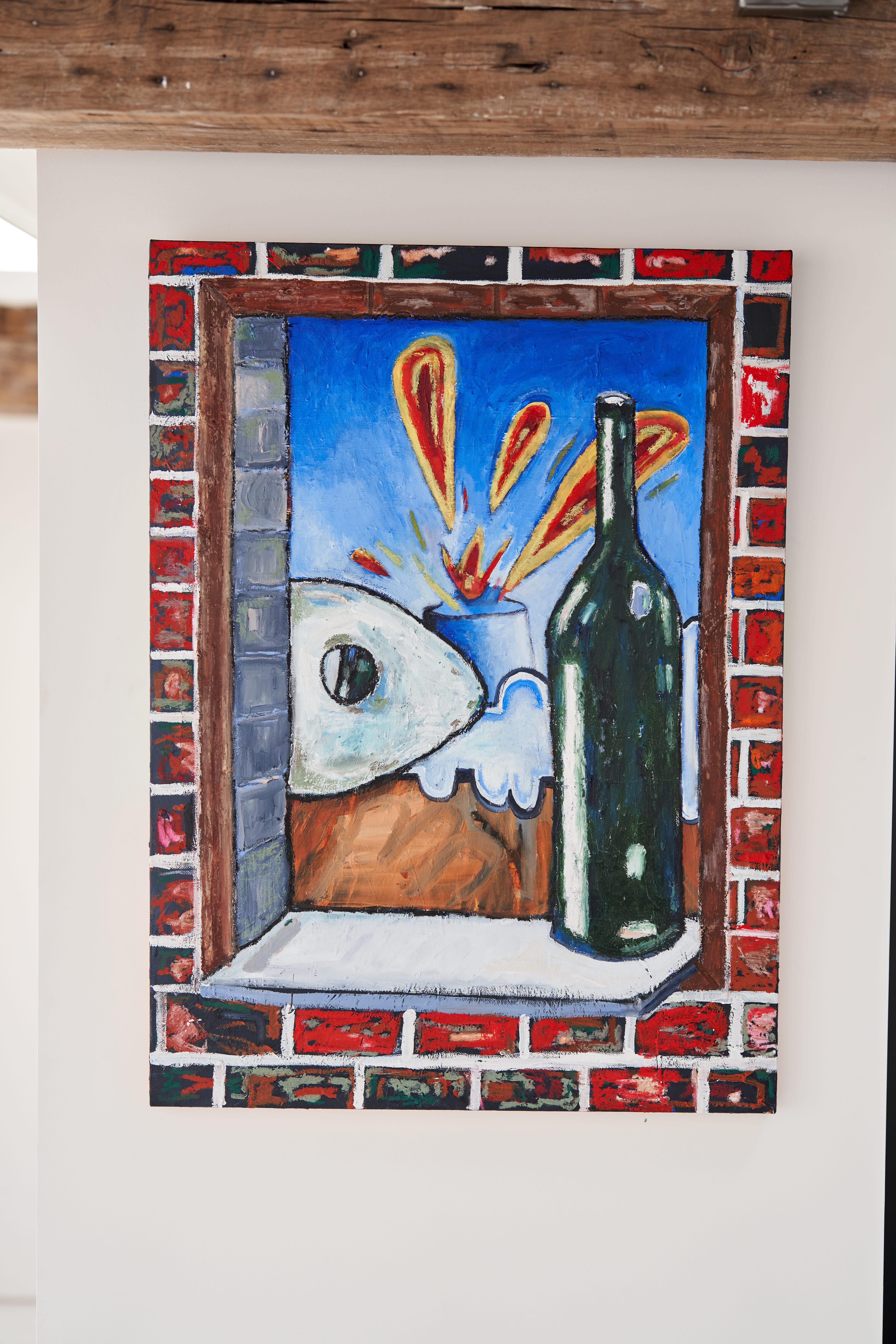 Mon œuvre d’art préférée est signée Thomas Ghyoot, chef de Misera. L’homme est beaucoup trop modeste, alors que son talent de dessinateur est immense. Il peint principalement des scènes gastronomiques et je lui ai acheté une toile représentant… une bouteille.