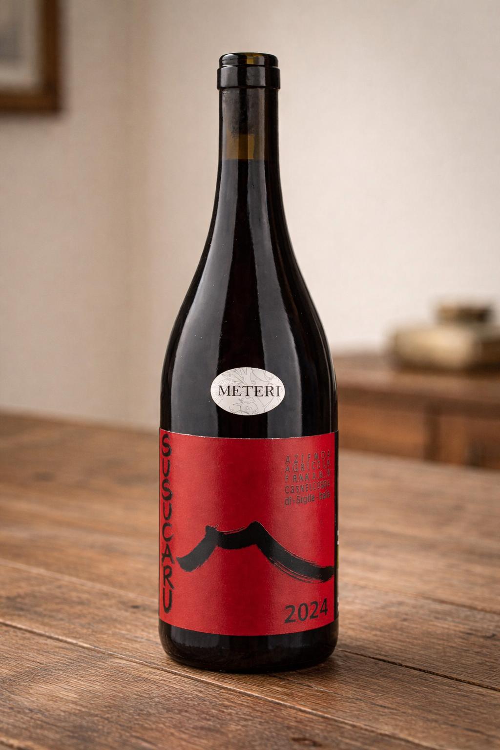 Cette idée de verticalité fait immédiatement sens dans le verre. Le Susucaru 2024 vibre, nourri par les sols volcaniques. Au nez, un mélange de petits fruits rouges, d’herbes sèches, d’une touche pierreuse qui rappelle la poussière volcanique. En bouche, une trajectoire rectiligne, soutenue, qui s’élargit vers la grenade, la myrte. Le tout pour une finale salivante où l’on imagine percevoir l’énergie tellurique caractéristique du versant nord de l’Etna.