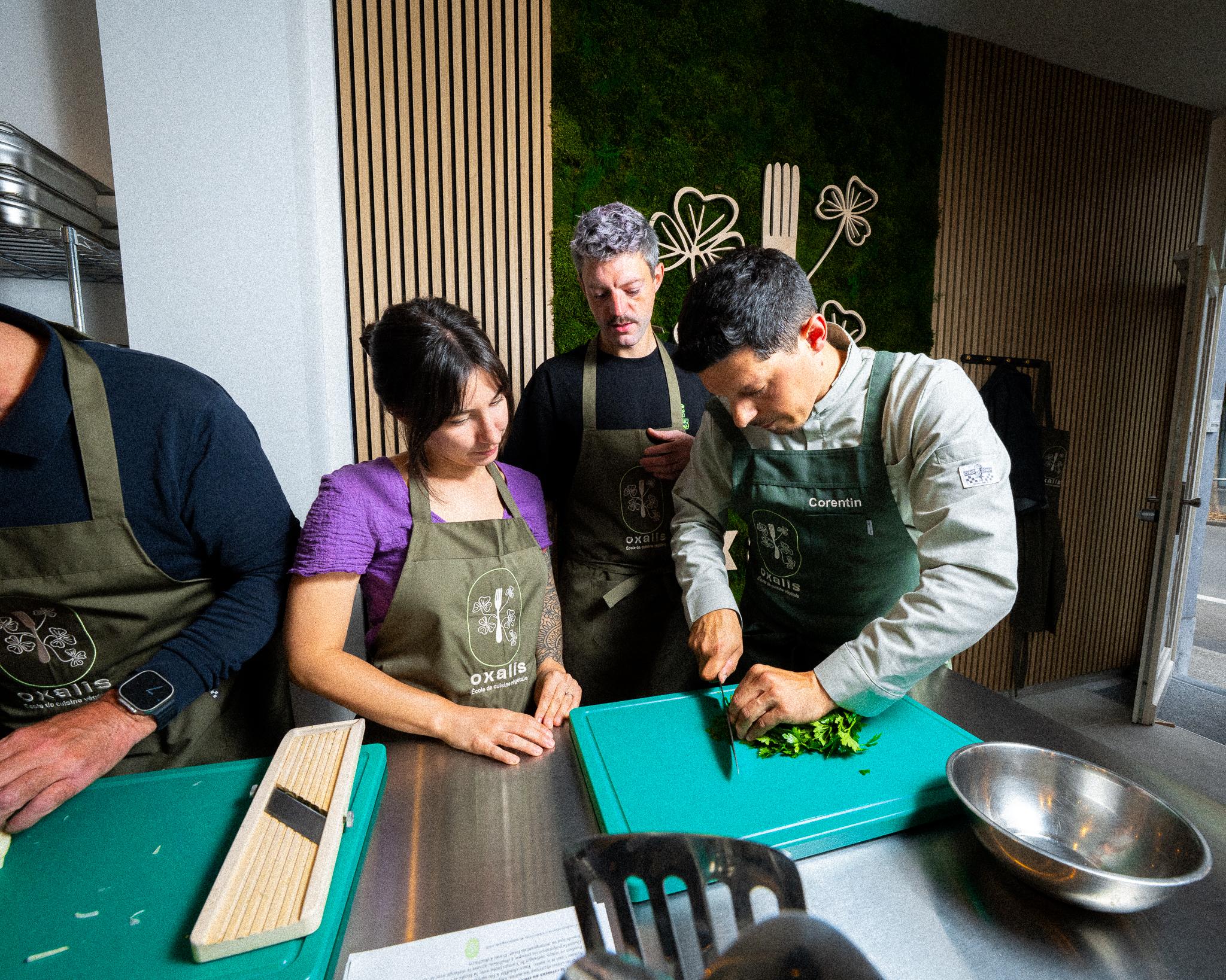 Depuis le 11 septembre, Bruxelles compte une nouvelle adresse pionnière : Oxalis, installée chaussée de Wavre à Auderghem. Derrière ce nom botanique, qui évoque une plante sauvage acidulée, se cache la première école de cuisine entièrement dédiée au végétal en Belgique. Portée par Corentin Crutzen, 33 ans, instituteur de formation, cuisinier passé par la France et pédagogue passionné, l’école rassemble douze formateurs spécialisés, de la pâtisserie à la fermentation en passant par l’alimentation vivante.
