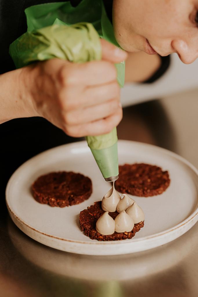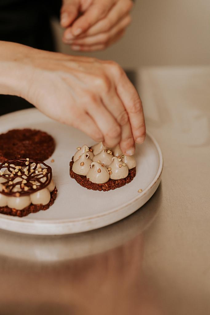 Au départ, Anna voulait devenir chef, jusqu’à ce qu’un stage la confronte à la réalité: «La rudesse de la culture macho en cuisine, ce n’était pas pour moi.» Son rêve était enterré, jusqu’à ce que sa mère lui suggère la pâtisserie – «Le premier jour de ma formation, j’ai su que c’était ce que je voulais faire», dit-elle. Après son diplôme, elle part à Bruxelles pour devenir cheffe pâtissière dans des restaurants de premier plan comme La Villa Lorraine puis le Chalet de la Forêt. Elle travaille ensuite avec des pâtissiers reconnus de la capitale tels que Nicolas Arnaud et Nikolas Koulepis. La pandémie lui donne ensuite le temps de développer précisément sa vision pour son propre établissement.