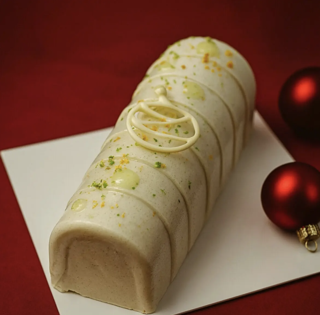 Pour une bûche au look minimaliste, chic et contemporain, poussez les portes de cette fabuleuse adresse liégeoise anciennement appelée La pâtisserie Vegan. Le nom a changé, mais pas la philosophie de l’établissement. Pour les fêtes, l’adresse qui a décroché le titre de meilleure pâtisserie vegan de Belgique en 2024 propose quatre bûches. Mais celle qui retient toute notre attention, c’est la création signature de la maison agrémentée d’agrumes et de sésame.