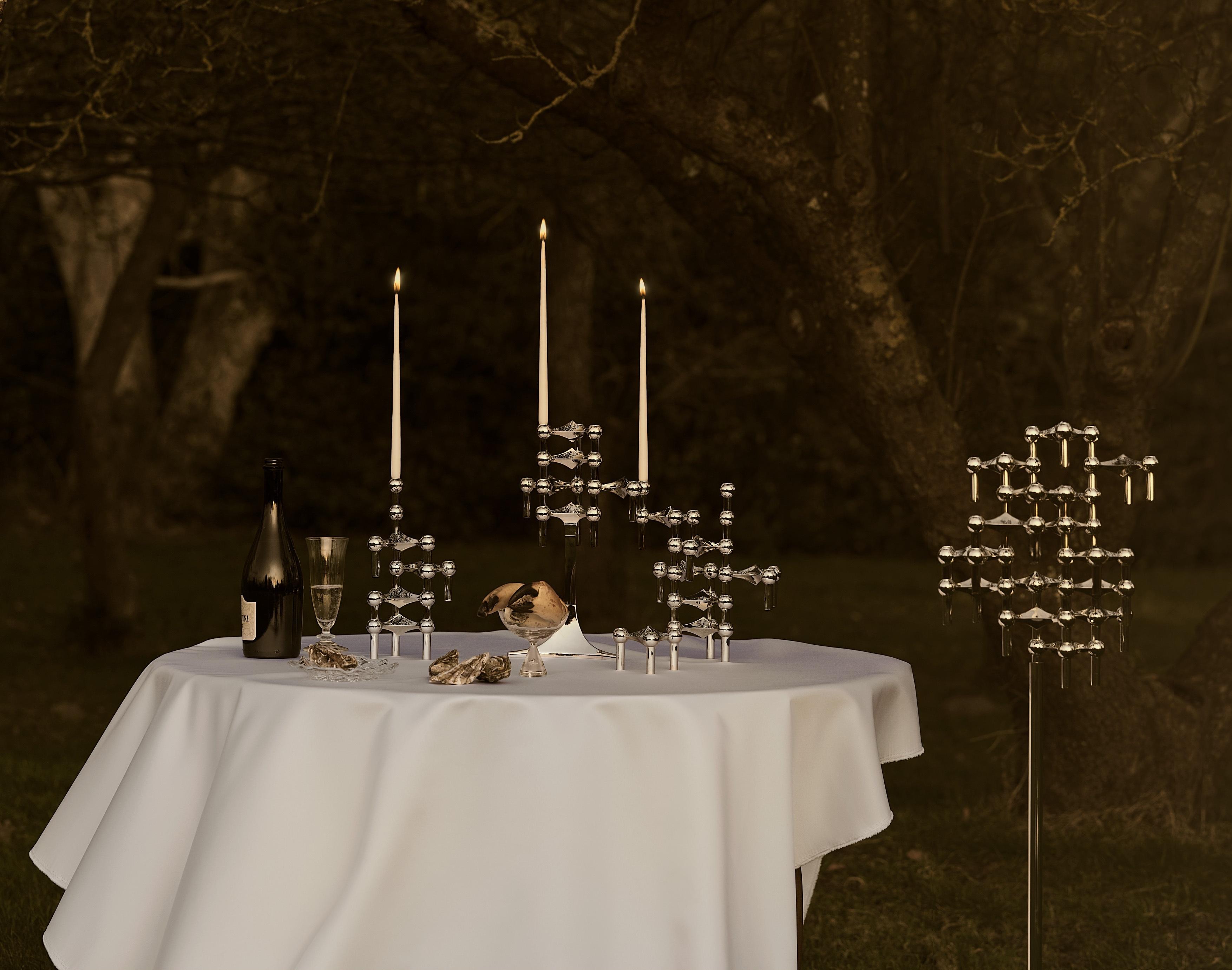 Le chandelier tripode, si reconnaissable, est lancé pour la première fois dans le Cologne des années 1960. Il assoit la réputation de la famille Nagel du jour au lendemain – une tournure inattendue pour un foyer qui, vingt ans plus tôt, a tout perdu pendant la Seconde Guerre mondiale. Leur ville natale n’est plus que ruines. Pour se reconstruire, les jeunes Hans Nagel et ses frères sont envoyés la nuit ramasser des douilles vides. Leur père transforme ce cuivre en cendriers, vases et chandeliers. Pas de doute: la fascination de Hans Nagel pour les beaux objets de table était inscrite dans les étoiles…