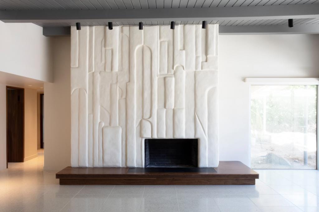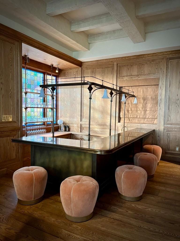 Katrien van der Schueren illustre le même profil. Partie à Los Angeles il y a vingt-cinq ans, elle expédiait à l’époque du mobilier vintage belge vers les États-Unis, car il s’y vendait bien auprès des décorateurs. Plus tard, elle a fondé Voila Studio, qui réalise des fresques murales sur mesure, des œuvres d’art, des bas-reliefs décoratifs et des objets de décoration pour résidences privées, halls d’hôtel et restaurants. Elle collabore elle aussi avec Van Duysen, mais aussi avec des grands noms comme Nicole Hollis, Kelly Wearstler, Ken Fulk, Steven Harris ou Martyn Lawrence Bullard – décorateur, entre autres, d’Elton John et de Cher.