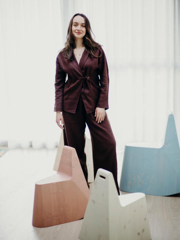 À terme, j’aimerais produire la TOPPLEchair à plus grande échelle, par exemple en plastique recyclé. Cela la rendrait encore plus légère, plus abordable et plus facile à entretenir, utilisable aussi bien à l’intérieur qu’à l’extérieur. Elle deviendrait ainsi accessible aux écoles, bureaux et entreprises. En attendant, je fabrique et ponce chaque chaise à la main dans mon atelier. »