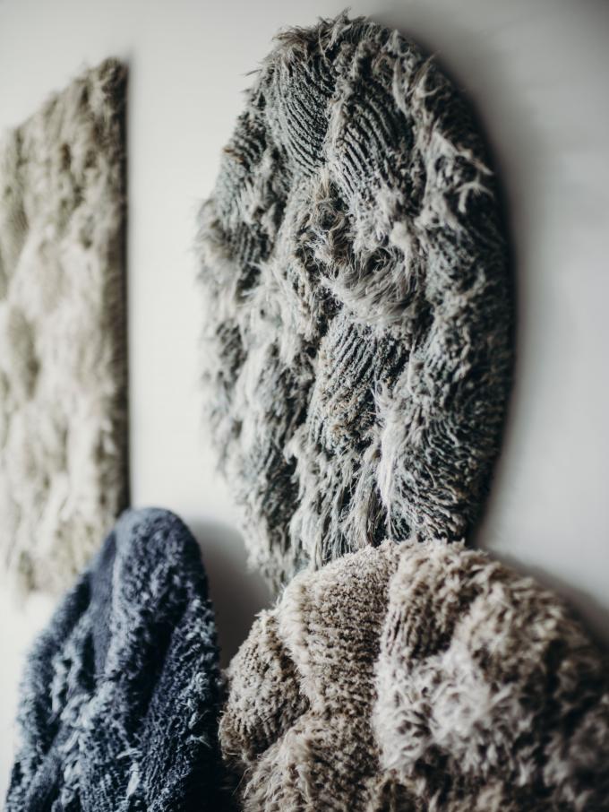 Liesbet Braeckman (51 ans) a redécouvert la couture quand elle a dû fermer temporairement son service traiteur pendant la pandémie. Ses objets muraux acoustiques se situent à la croisée de l’art et du design.