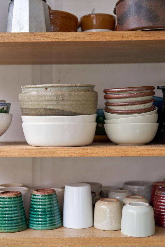 Je collectionne la céramique. Mais est-ce une collection ou plutôt une compulsion d’achat? Je me suis cependant un peu calmée, enfin, cela dépend, c’est par phase! J’aime vraiment la céramique, surtout l’utilitaire, la vaisselle, les théières. Ce sont d’abord les formes qui m’attirent, ensuite les teintes, les verts surtout et la possibilité de les utiliser, cela fait partie de leur attrait. Je rêverais d’avoir une grande vitrine où ranger ma collection et que je puisse y avoir accès facilement, je n’aime pas que ce soit stocké dans une boîte au fond d’un placard. »