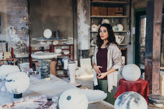 Fondatrice de Marbled Salts, une ligne de mobilier et d’objets en sel marin, Roxane Lahidji développe depuis 2017 une matière sculptée et moulée qui, tout en étant issue de ce minéral recyclable, imite l’apparence du marbre ou de l’onyx. Son travail a déjà rejoint les collections du Design Museum de Gand, du CID Grand-Hornu et du Musée des Arts décoratifs de Paris.