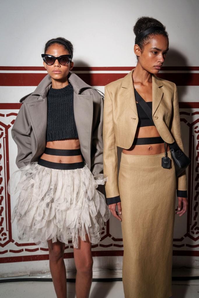 Mais n’est-ce pas l’une des caractéristiques des créateurices belges et assimilés, j’entends par là celles et ceux qui firent leurs études en noir-jaune-rouge, à l’Académie royale des Beaux-Arts d’Anvers ou à La Cambre mode(s) à Bruxelles, pour la majorité d’entre eux ? A force de travail et de créativité, ils sont dorénavant à la tête des grandes maisons italiennes et françaises. En vrac, en voici la liste : outre Matthieu Blazy chez Chanel, Raf Simons aux côtés de Miuccia Prada, Meryll Rogge chez Marni, Glenn Martens chez Maison Margiela, Pieter Mulier chez Alaïa, Nicolas Di Felice chez Courrèges, Julien Dossena chez Rabanne, Julian Klausner chez Dries Van Noten, les jumelles Alexandra et Ségolène Jacmin pour Façon Jacmin, Julie Kegels et Marie Adam-Leenaerdt sous leur nom à elles et Anthony Vaccarello chez Yves Saint Laurent.