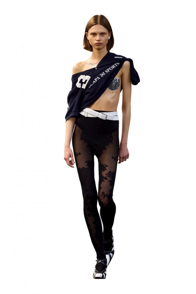 Julie Kegels a ouvert la Fashion Week avec un défilé sous la station de métro Passy. La collection, Quick Change, était dédiée aux femmes «en mouvement» — celles qui se changent rapidement entre deux rendez-vous alors qu’elles sont déjà en retard. La créatrice a présenté ses collaborations avec les marques belges Scapa Sport et Marie Jo. Rosalia était au premier rang. La superstar avait elle-même demandé à pouvoir venir, et c’est très inhabituel dans la mode.