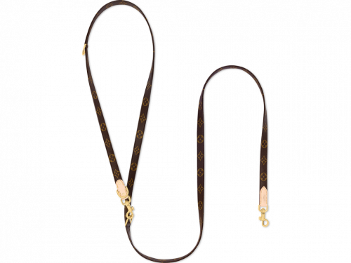 Une version bandoulière de la laisse Monogram permet des promenades mains libres. Ce qui facilite le transport d’un tapis de voyage pour animal » précise encore la vénérable maison parisienne.