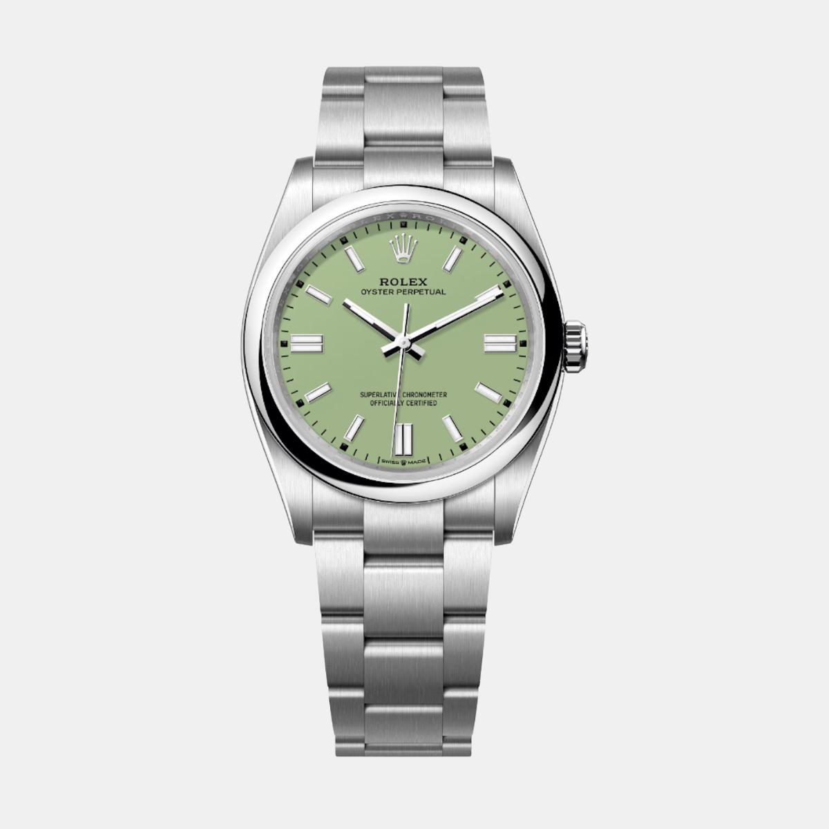 8. Montre Oyster Perpetual 36 Pistachio, Rolex, 6.400 euros, rolex.com
