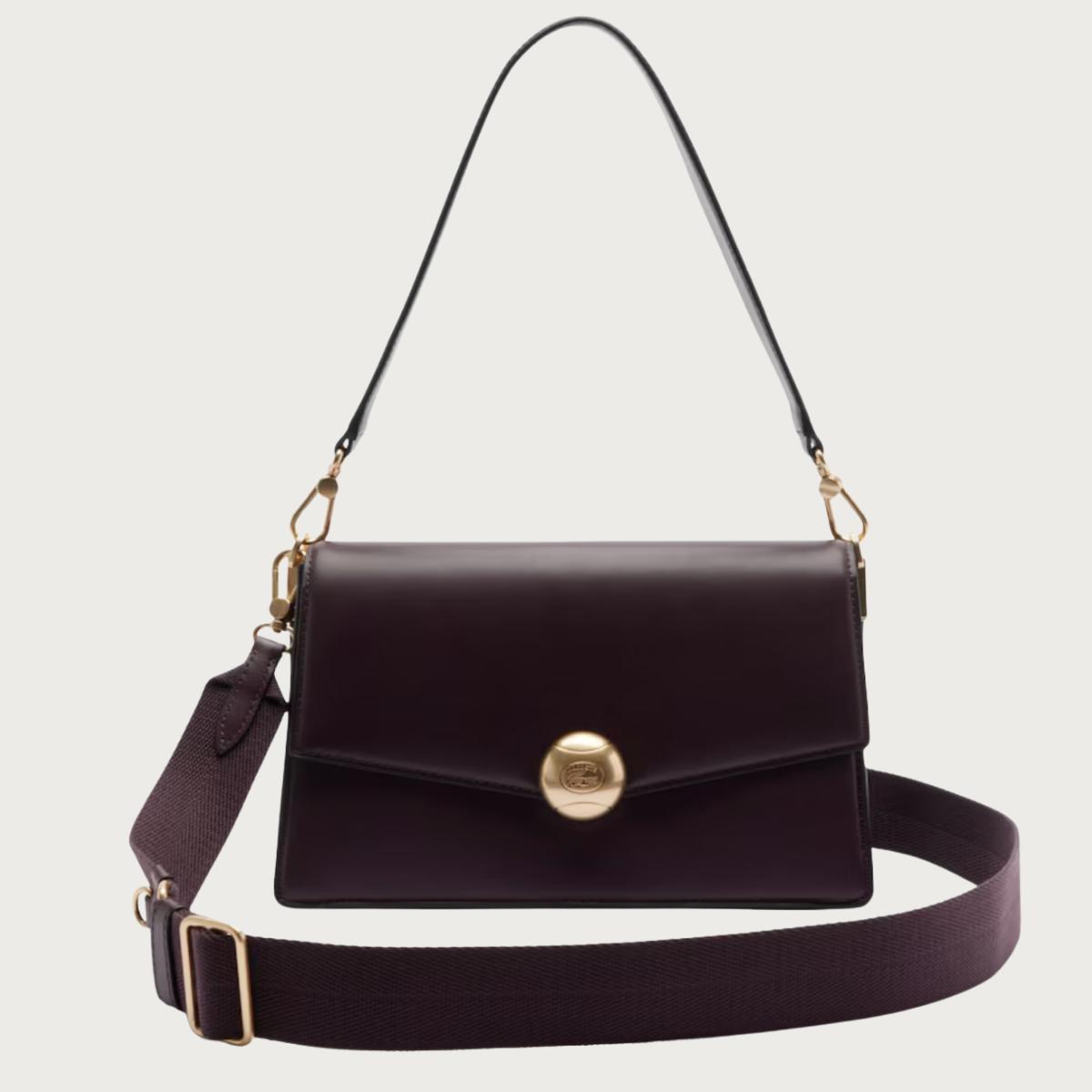Un sac « Tennis Bliss » au fermoir évocateur, Lacoste, 275 euros, disponible ici.