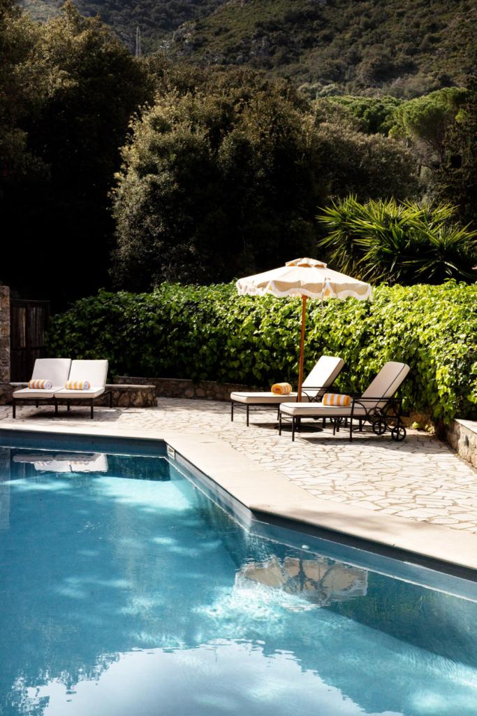 L’endroit préféré de Sciò se trouve la terrasse du Bar all’Aperto. « Pour la vue à couper le souffle sur la mer et notre jardin, et bien sûr pour nos fabuleux cocktails. » Et un peu partout, des petits nuages de romarin qui picorent le décor, entre les terrasses chaleureuses, le spa, la Pelliclub où l’on déniche tenues de plage ou de soirée – en collaboration avec Birkenstock, Monopoly ou Highsnobiety -, le Bar Roberto où l’on baptise des cocktails du nom de clients célèbres, la piscine iconique, et l’ascenseur menant au Beach Club. Enserrée par les rochers, la mer Tyrrhénienne y apparaît sous son jour le plus pittoresque. Et même par temps couvert, c’est un endroit délicieux où se poser quelques heures.