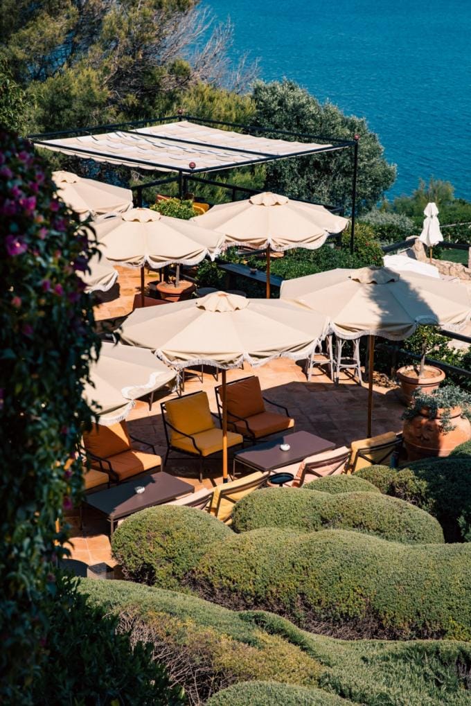 L’endroit préféré de Sciò se trouve la terrasse du Bar all’Aperto. « Pour la vue à couper le souffle sur la mer et notre jardin, et bien sûr pour nos fabuleux cocktails. » Et un peu partout, des petits nuages de romarin qui picorent le décor, entre les terrasses chaleureuses, le spa, la Pelliclub où l’on déniche tenues de plage ou de soirée – en collaboration avec Birkenstock, Monopoly ou Highsnobiety -, le Bar Roberto où l’on baptise des cocktails du nom de clients célèbres, la piscine iconique, et l’ascenseur menant au Beach Club. Enserrée par les rochers, la mer Tyrrhénienne y apparaît sous son jour le plus pittoresque. Et même par temps couvert, c’est un endroit délicieux où se poser quelques heures.