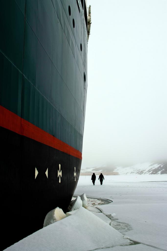 Plus ils sont bleus, plus ils sont anciens et compacts. Et l’expression «la partie émergée de l’iceberg» est littéralement vraie: à peine 10% émergent. Une muraille d’azur glisse le long de la coque et est vieille de milliers d’années.